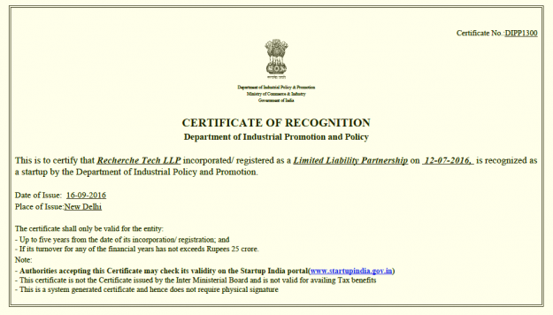 Startup India – Certificate of Recognition On 16th September, 2016, Recherche Tech LLP was conferred the Startup India Recognition by the Department of Industrial Promotion and Policy, Govt. of India. This is in acknowledgement of the innovation of our product, My sCool Server – The next generation in computing and learning convenience for schools. This was…